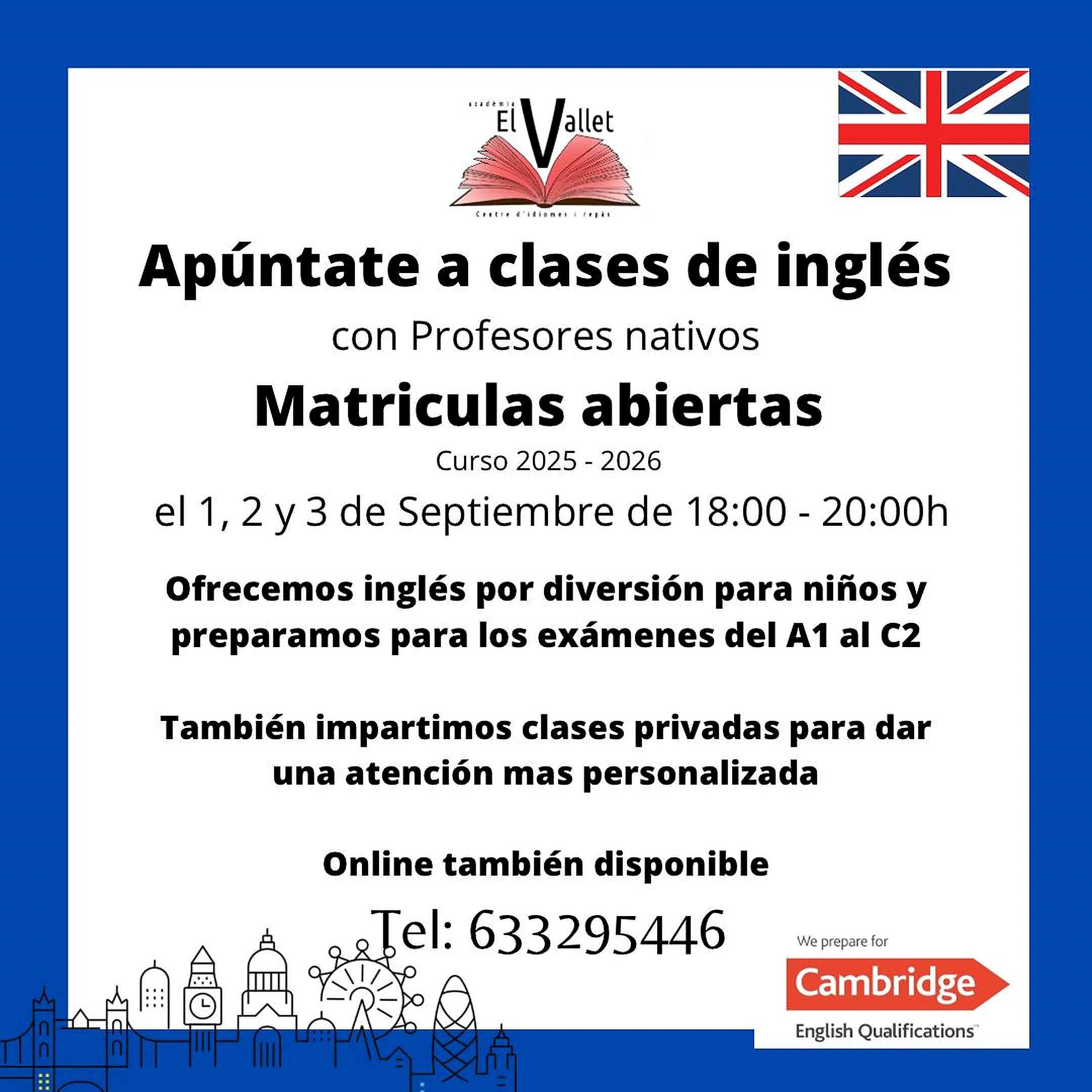 Clases en grupo- Se estudia en grupos de personas que tienen un nivel muy similar. Tenemos grupos para niños de 3 hasta 6 años, y para los niveles A1, A2, B1, B2 y C1.